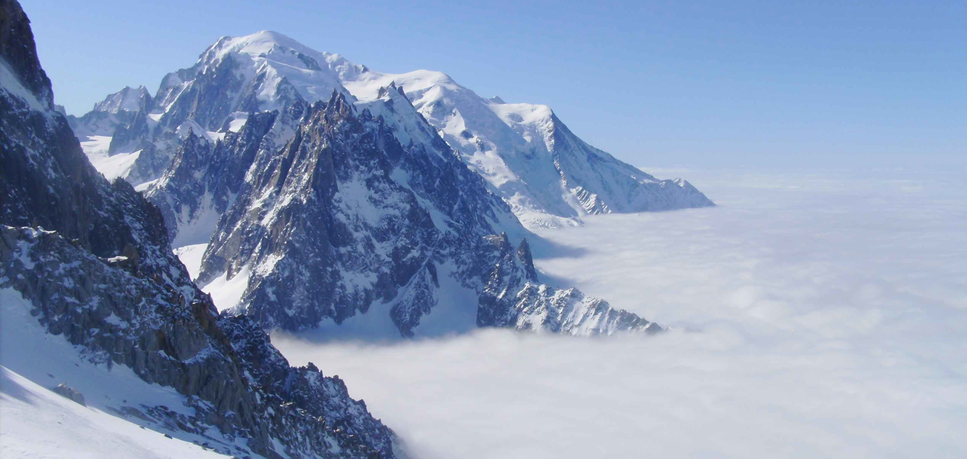 This is my current header image, a photo I took in 2008 at the top station of the Grand Montets ski field, near Chamonix in the French Alps. I am looking towards the Mont Blanc massif from an altitude of 3300 metres (over 10,000 feet). This what skiing is all about: above the clouds, spectacular views and long vertical drops.The Argentiere Glacier is below and behind me. From here its 2,200 metres vertical descent – nonstop skiing if you avoid the crevasses. On my descent, I saw one person ski into a crevasse. But more on that later.
