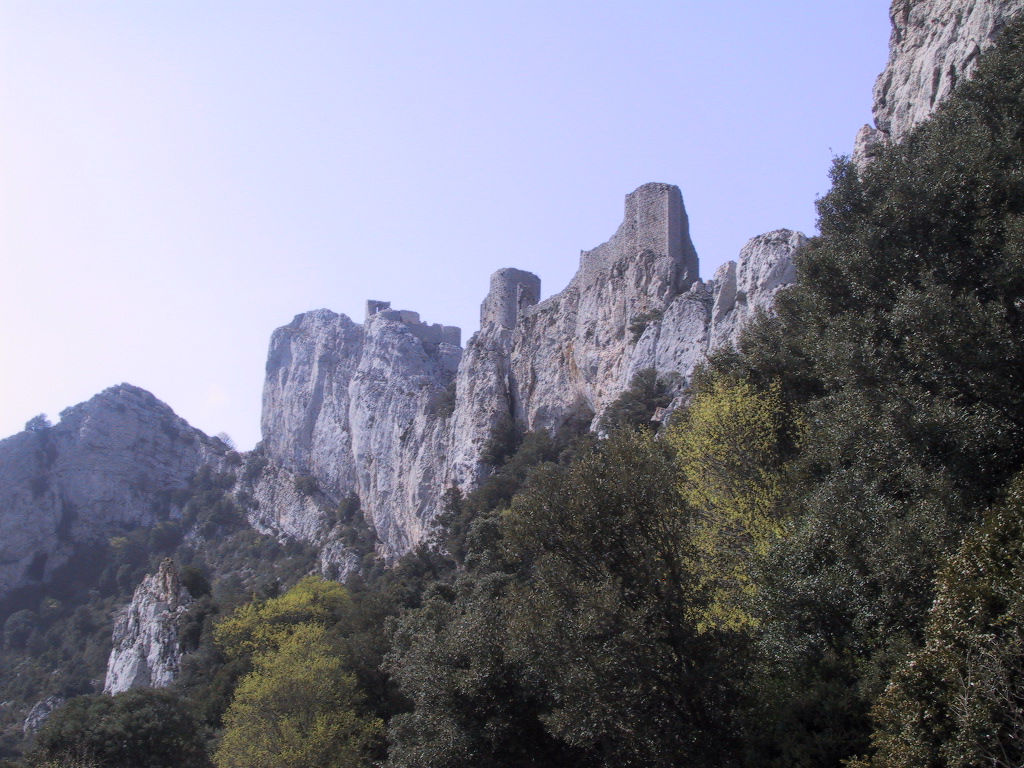 My favourites, apart from these 2, are Puylaurens and of cpurse Montségur . But, on the other side of the motorway, North, in the Montagne Noire, a Southern extension of the Massif Central, there also are Cathar fortresses . A very nice place is Lastours, three little castles on top of the hills with yews everywhere, and the city of Minerve, whose location on a cliff allowed the Cathars to resist for months too .