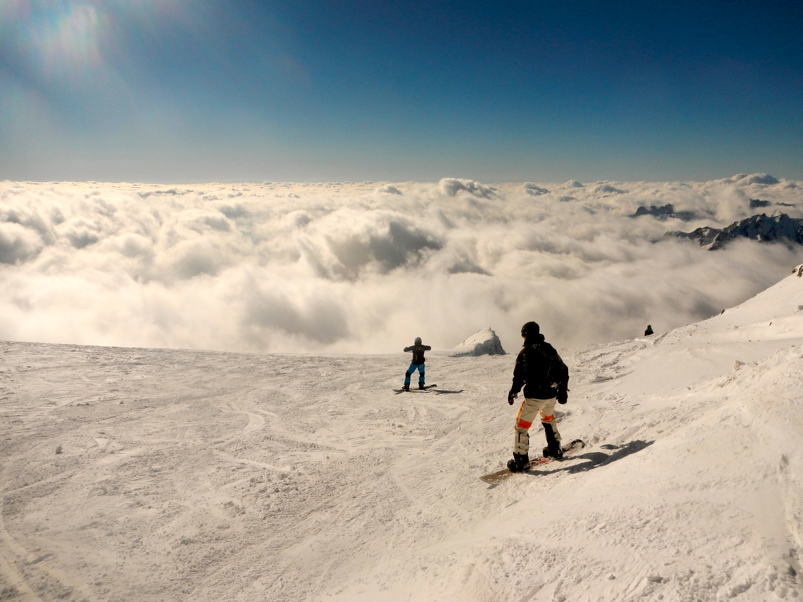 I could not resist taking a photo of snowboarders heading down into the clouds.