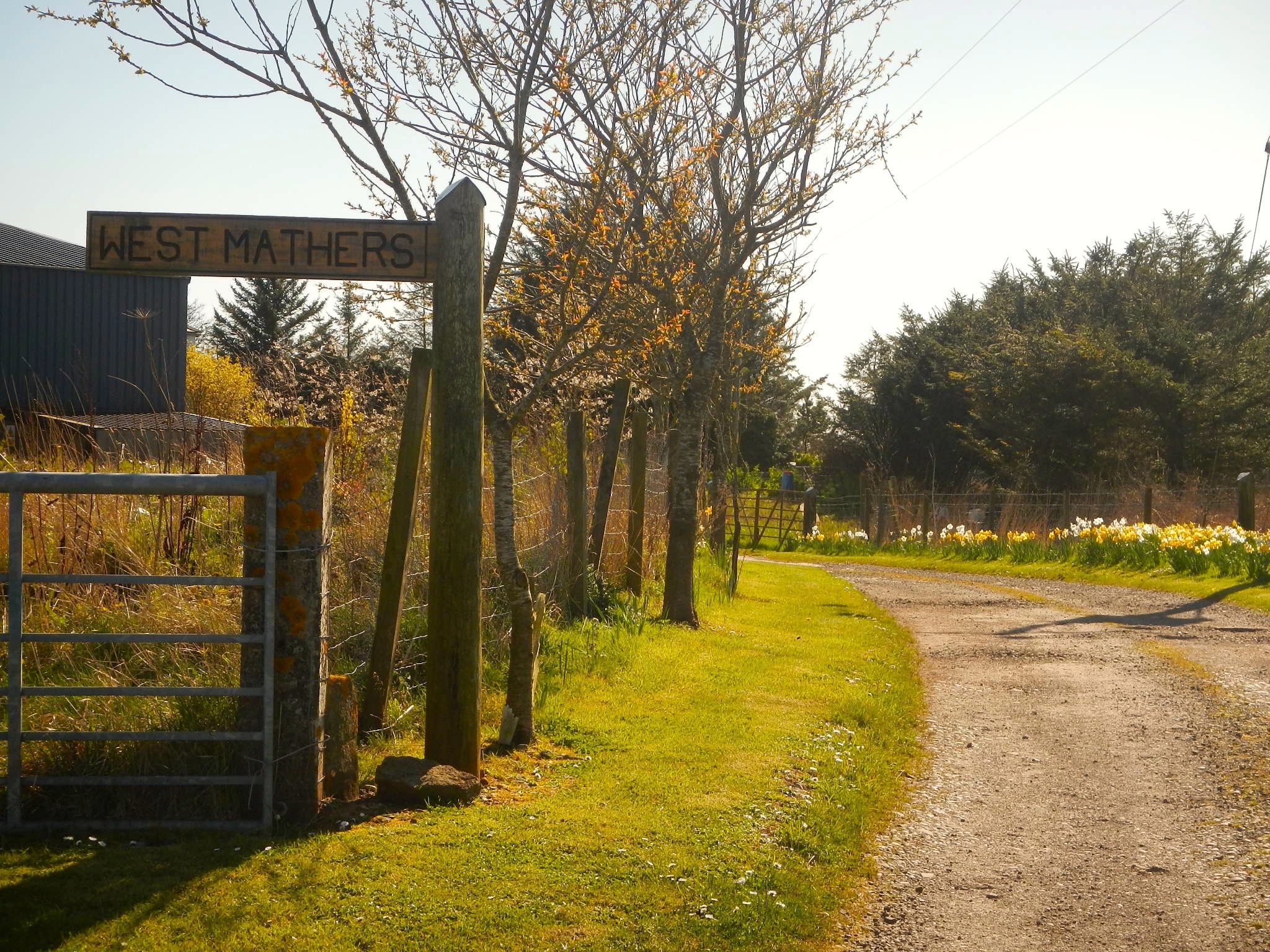 DSCN6030DSCN6027When I visited West Mathers, it was no more than a sign post and a few farms. At the end of the road past West Mathers were a small cluster of cottages behind the beach, and one of these called itself Tangleha, the last trace of the previous village. The West Mathers farm had a quite striking white farmhouse on the headland north of the Kaim of Mathers.
