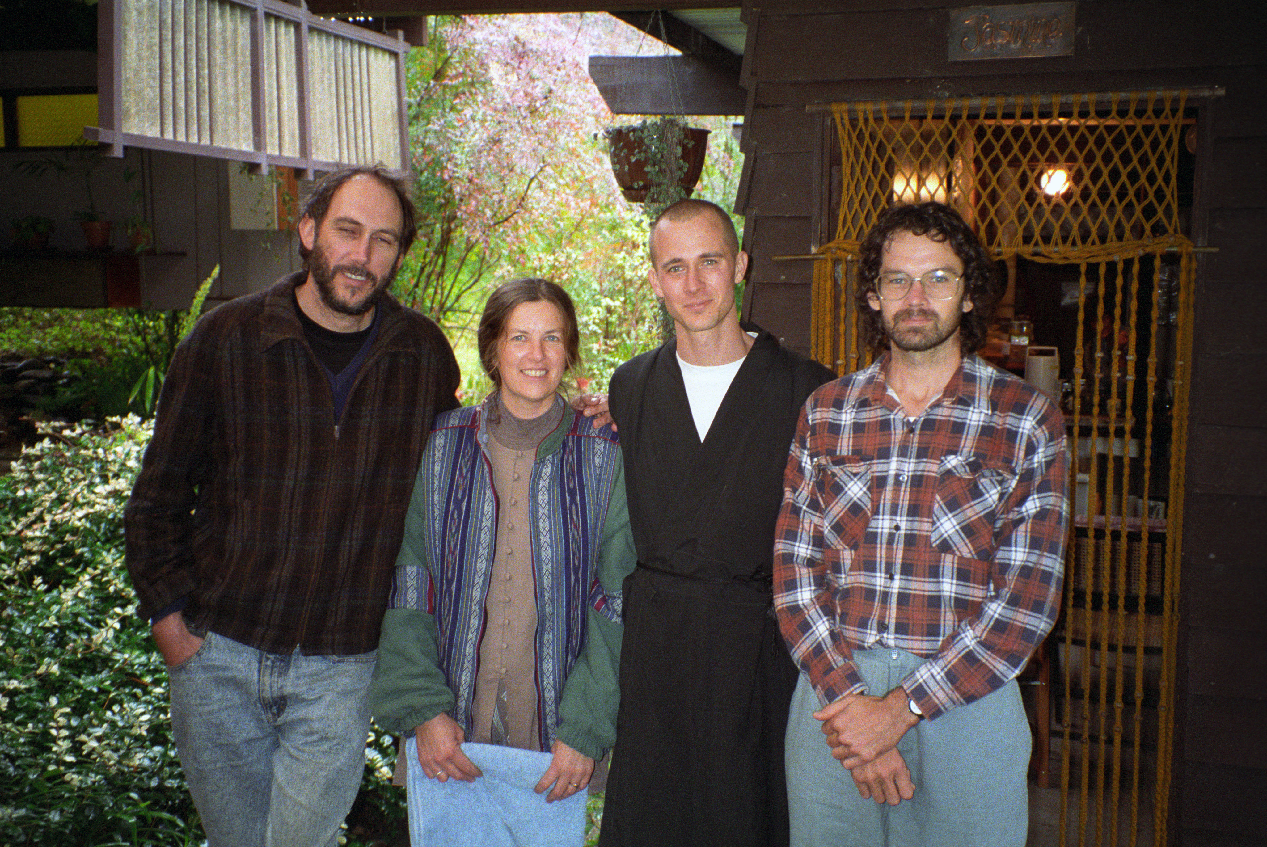 Five Zen teachers at Gorricks Run, 1996. From the left: Ross Bolleter, Robert Aitken Roshi, Subhana Bargazhi, John Tarrant and Daniel Tarragno.