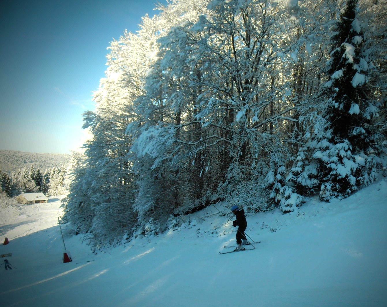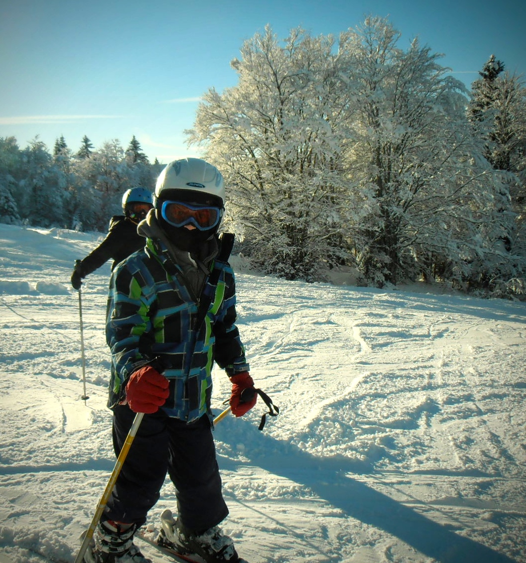 After a unseasonally warm November and December, it got colder in January and the Juras finally got a good snowfall. We even got a light dusting of snow at our house in Geneva. So the next day, the boys and I threw our skis in the car and headed up to Crozet, less than 30 minute drive.
