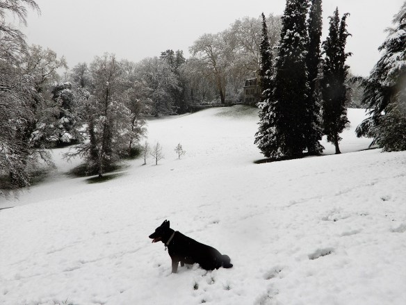 After a warm and sunny March, the snow has returned to Geneva. It started to snow in the evening and continued overnight. When I woke the world was transformed. I took my dog for a walk in the snow, she loves it. And I could not resist taking too many photos.