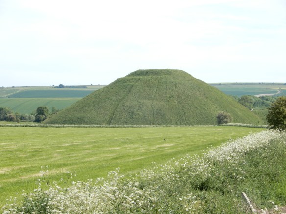 Clearly visible about 1 km away is Silbury Hill, built around 2,400 BC at the beginning of the Bronze age. This dates it over 1,200 years later than West Kennet Long Barrow. Silbury Hill the largest and tallest prehistoric structure in Europe, standing about 30 metres high and 160 metres wide.