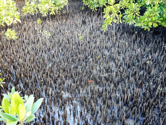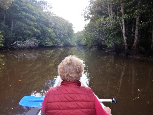 As we got further upriver, we headed into Coolum Creek and continued until the water became too shallow for the canoe. Turning around, we headed back downriver to the Maroochy wetlands, an extended area of mangrove swamp, and went for a walk through the mangroves.
