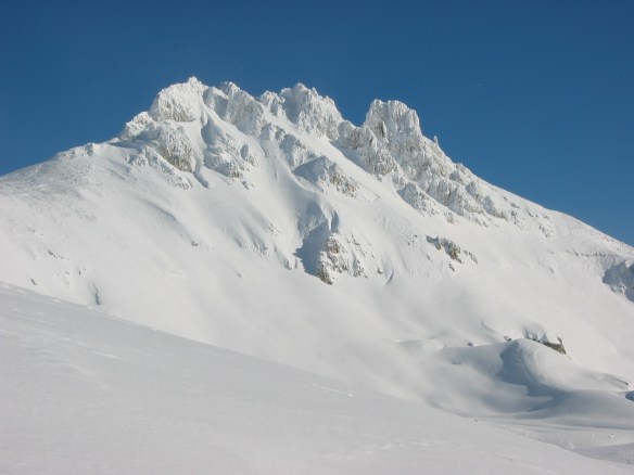 There is nothing quite like breaking a trail on fresh powder snow in clear weather in the peaceful quiet of the high mountains. All is right with the world, in this moment.