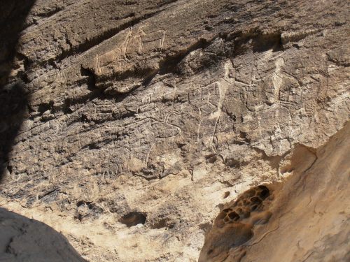 Rock carvings of paleolithic hunters on the western shore of Lake Caspian