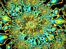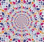 More occasionally, when I had focused on one of these expanded patterns, it would fill my entire visual field as a brightly coloured geometric pattern, often intricately interwoven like a mosaic. And this pattern might be dynamic, continually rotating and transforming. Here is one example I recorded: