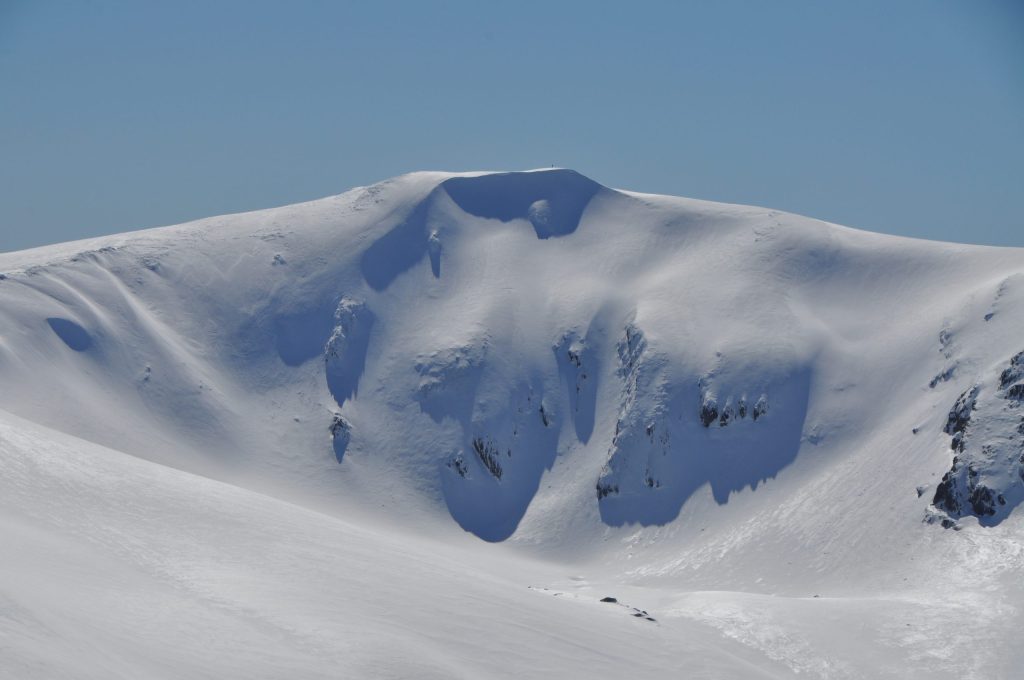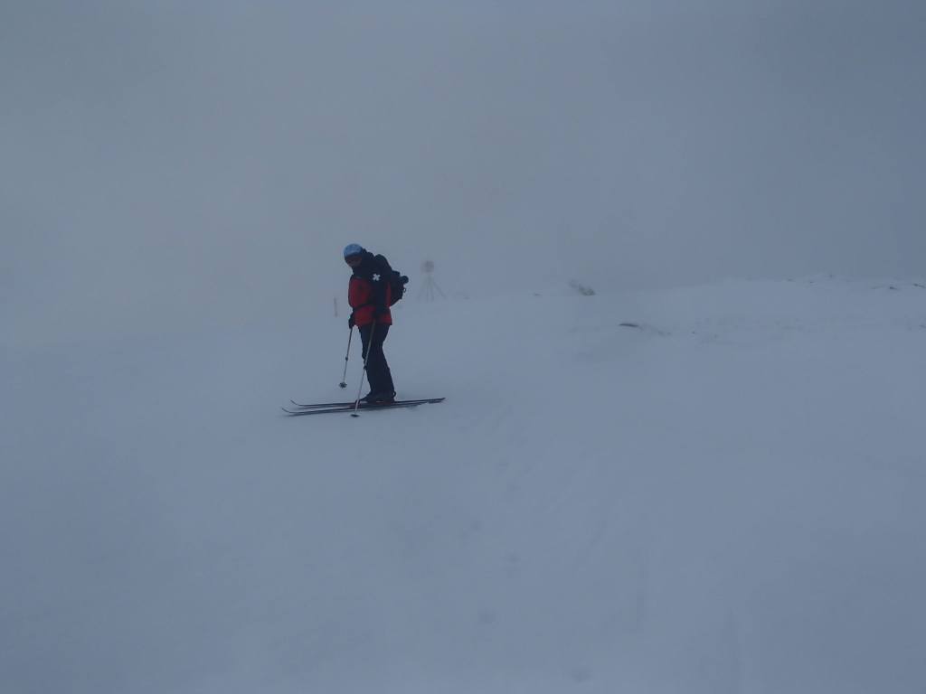 I skied the approximately six kilometres to Mt Kosciuszko without any problems. As I ascended to the summit, the wind became much stronger and the clouds blew in, reducing visibility to around 10 metres or less. I reached the summit, and then turned back, skiing so I thought back down the same ridge I had ascended. Visibility was very low and not too far along the ridge, I suddenly found myself airborn and falling fast. I had skied off a cliff in the white-out. I fell for long enough to have time to think about whether I knew of any cliffs on Kosciuszko or how high they were. There was no fear, and my life did not flash before my eyes, I was simply focused on figuring out whether I was in for a big fall. I landed in a deep drift of powder snow without any injury.