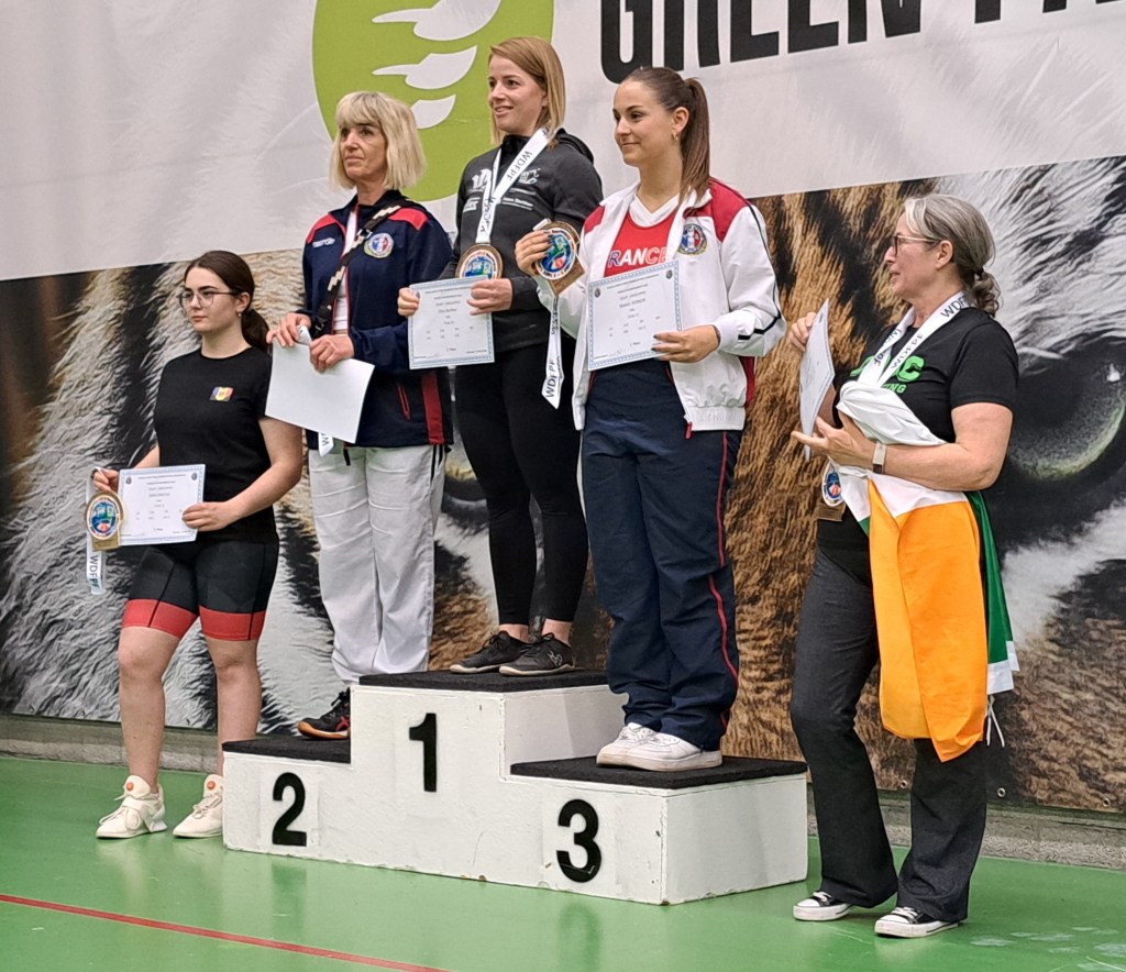 Gina unfortunately did not beat her previous deadlift record of 195 kg (<70 kg weight class SR age group). She did come first in her weight class for both squat (125 kg) and deadlift (190 kg) and second in her weight class for bench press (80 kg). Two times world champion.