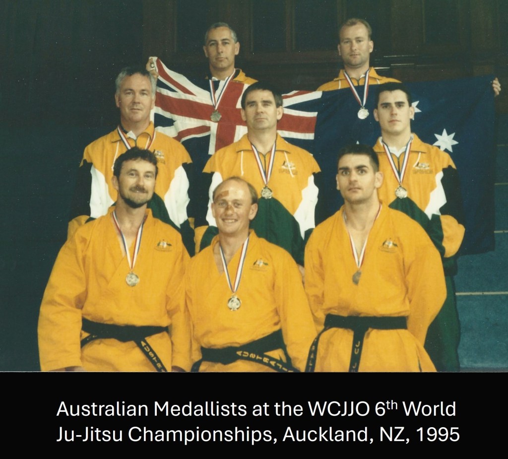 And finally, like Felix, I have now competed at world level twice. In my case, the last time was a different sport (ju-jiutsu), and competing for a different country (Australia), 29 years ago. I am at the top left, wearing a silver medal.