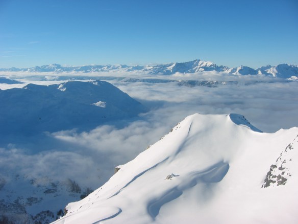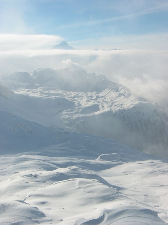 Its starting to turn cold in Geneva, and my thoughts turn towards skiing in the coming winter. I was cleaning up my photo library the other day, and came across some photos from January 2003 of skiing in deep fresh powder snow at Verbier in the Swiss Alps. Verbier is a bit under two hours drive from Geneva and is a renowned ski resort with spectacular scenery and skiing, with many difficult “black” pistes, and extensive off-piste skiing.  In the first few years I was in Geneva, Verbier was my regular ski destination, and for a couple of years I rented a small studio apartment there so I could go up for weekends and longer periods when possible. The following photos were all taken in the main ski domain around Atelas (2727 m), La Chaux (2260 m), Fontanet (2485 m), Col des Gentianes (2950 m).