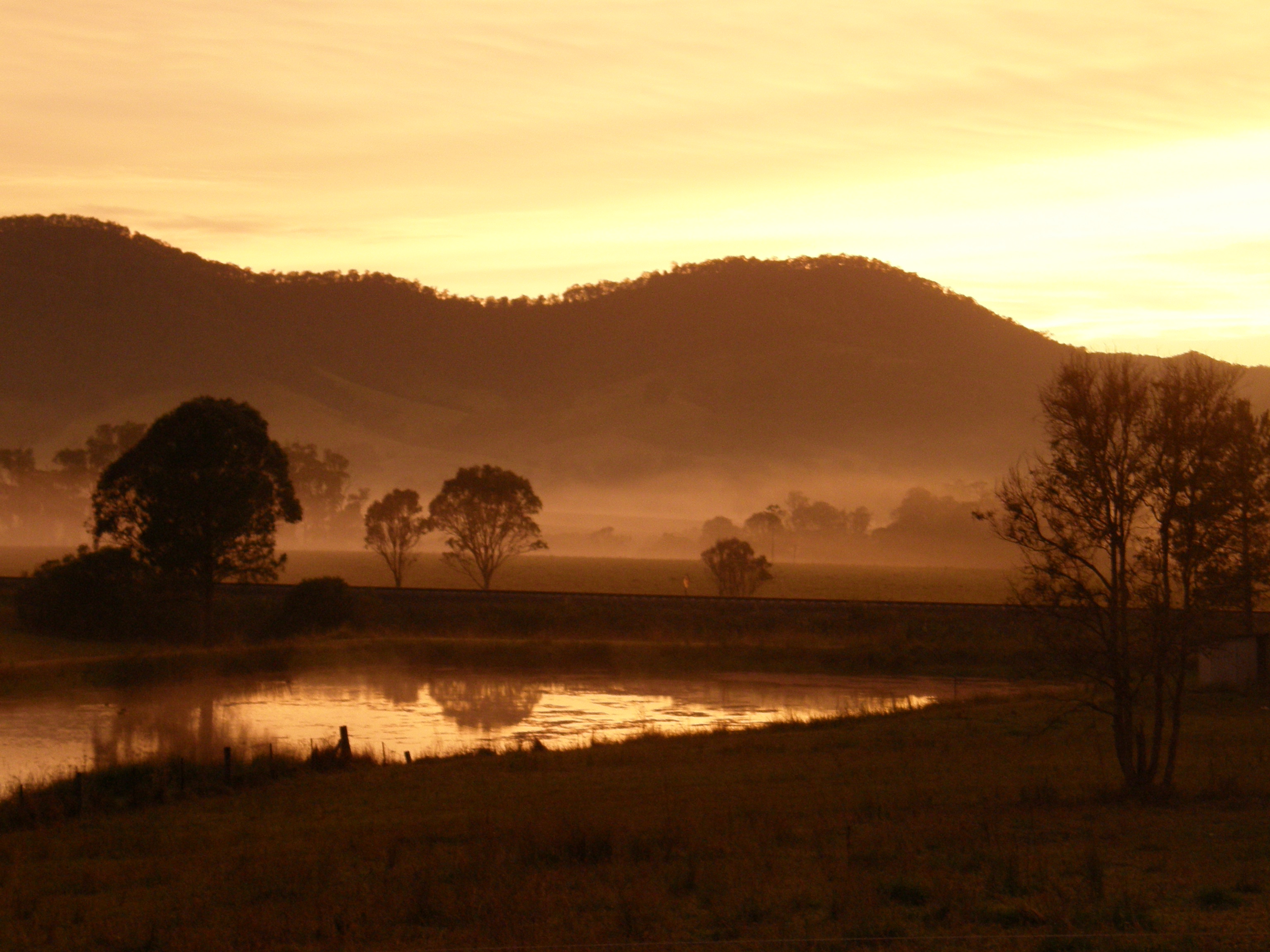 Sunset reflected in a farm dam, Gloucester, New South Wales