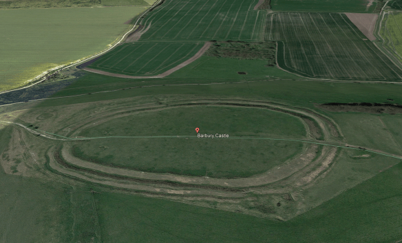 As well as the barrows and stone-circles of my two previous posts, the Wessex Downs have quite a large number of Iron Age fortresses on the hilltops. The closest of these to Avebury, and the first I visited was Barbury Castle, a few miles south of Swindon.