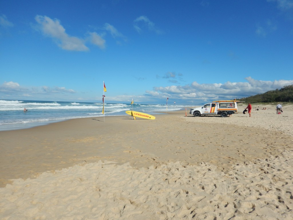 Most days there were a handful of people in the surf. On the day the photo above was taken, there were only two others in the water. The lifeguard was sitting in the truck. He did use his loudhailer twice to chastise my son, who was outside the flags and too far out.